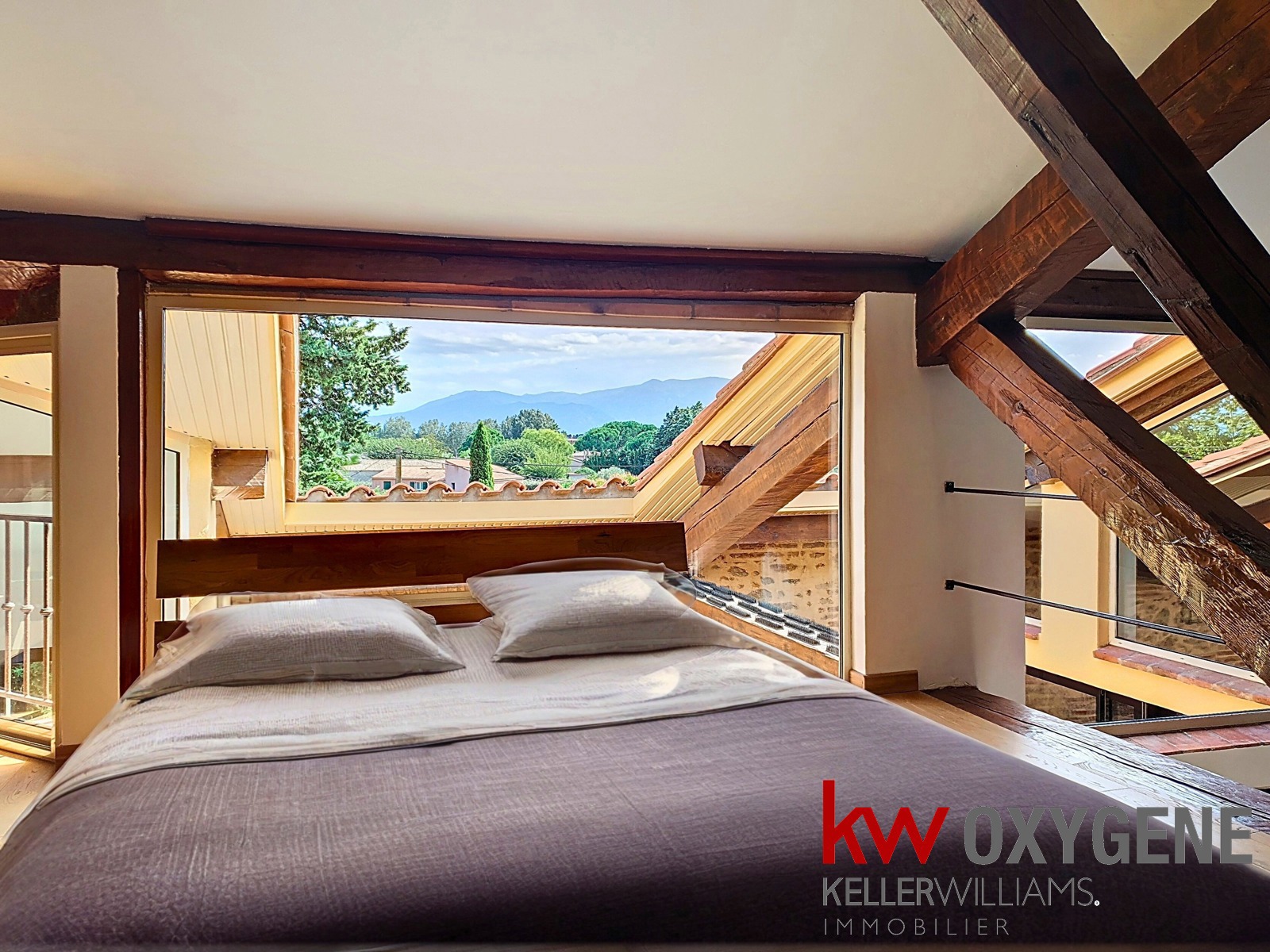 Dès l’entrée, les volumes et la clarté séduisent. La pièce de vie, baignée de lumière, s’ouvre sur un patio intimiste sans vis-à-vis, parfait pour vos moments de détente. Les poutres apparentes, la charpente mise en valeur et l’escalier en fer forgé apportent une vraie identité au lieu.